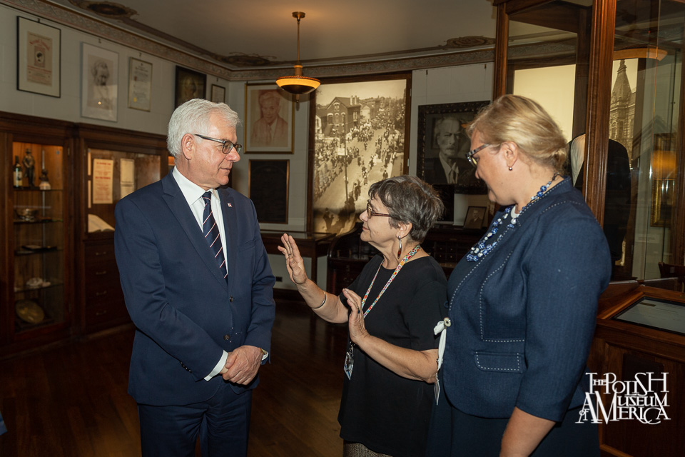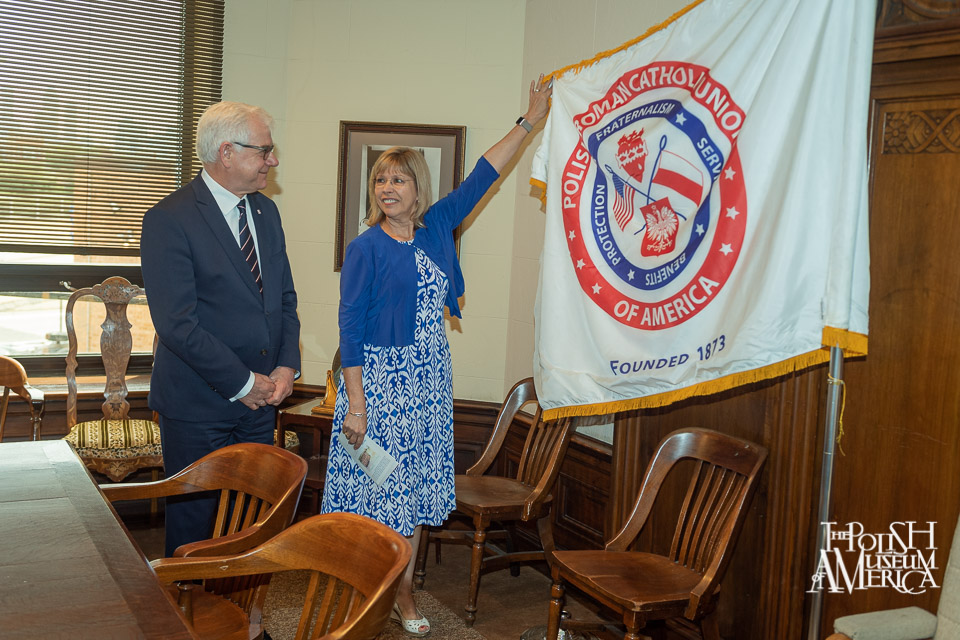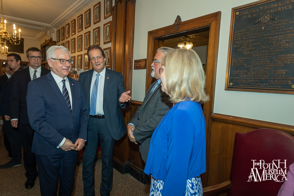 The Polish Museum of America was visited today by Minister Jacek Czaputowicz from the Ministry of Foreign Affairs and Polish Ambassador to the U. S. Piotr Wilczek. Welcoming both were officers and staff of the PMA and the Polish Roman Catholic Union of America.
