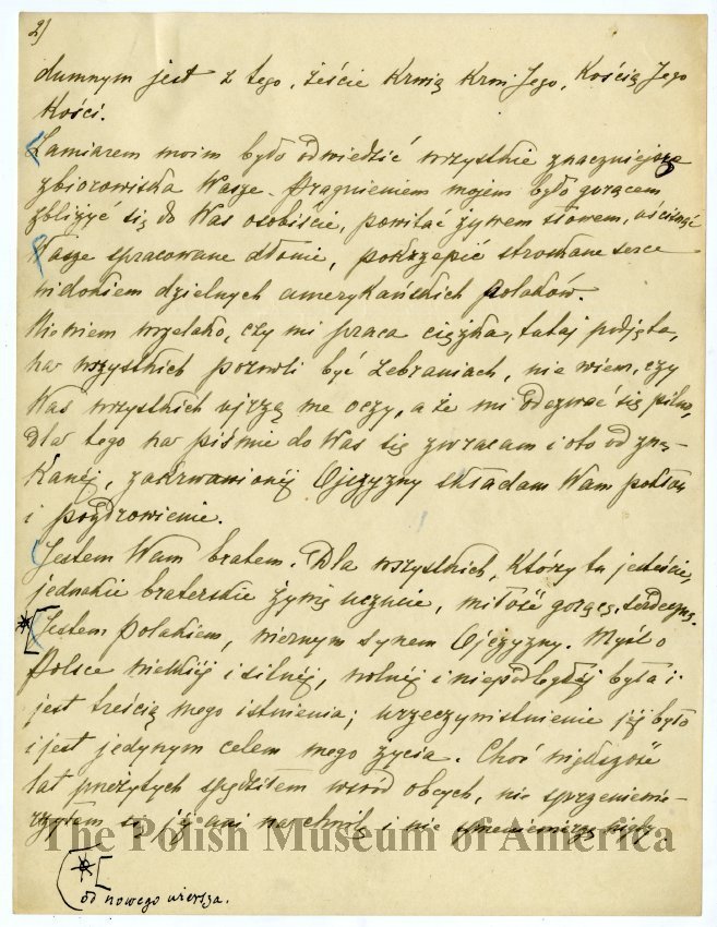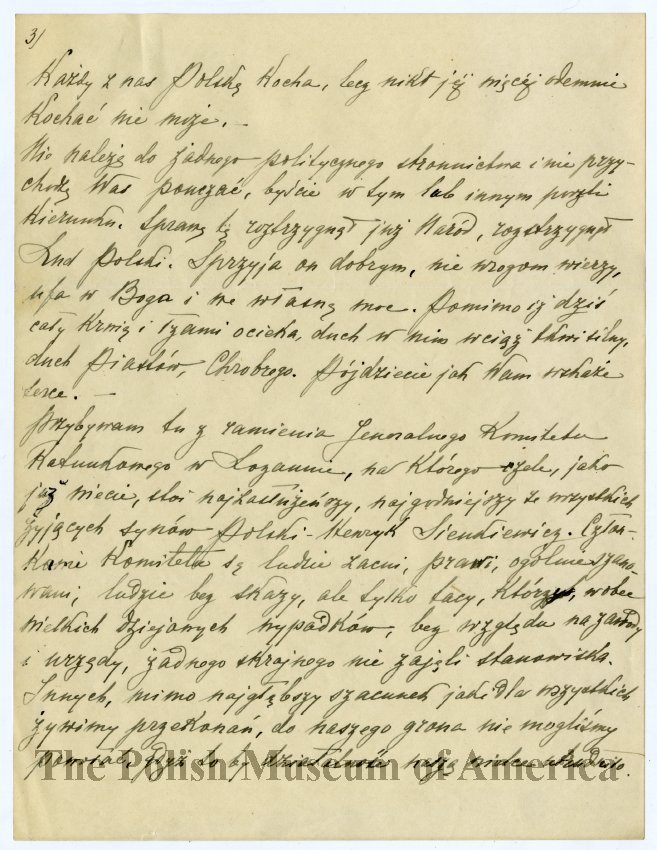 Przemowienie patriotyczne – "Mistrz Paderewski do Polonii w Ameryce", wygloszone 22 maja 1915 roku w Humboldt Park, Chicago, 9 stron.
