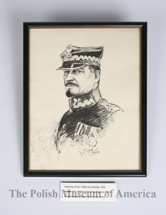 Framed drawing of Gen. Haller by Walter Krawiec