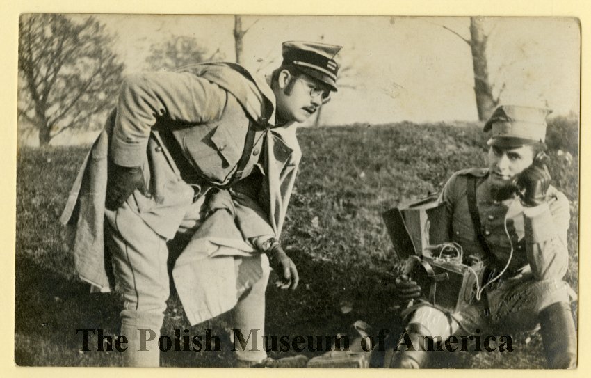 Porucznik i podporucznik z telefonem w plenerze;1917–1918 ?