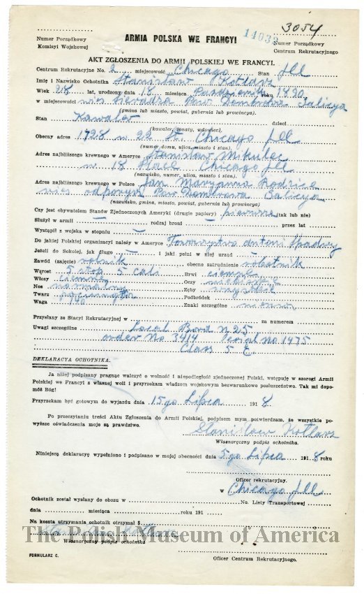 Dokumenty rekrutacyjne Armii Polskiej we Francji | Polish Army in France Recruitment Papers – Stanislaw Kotlarz