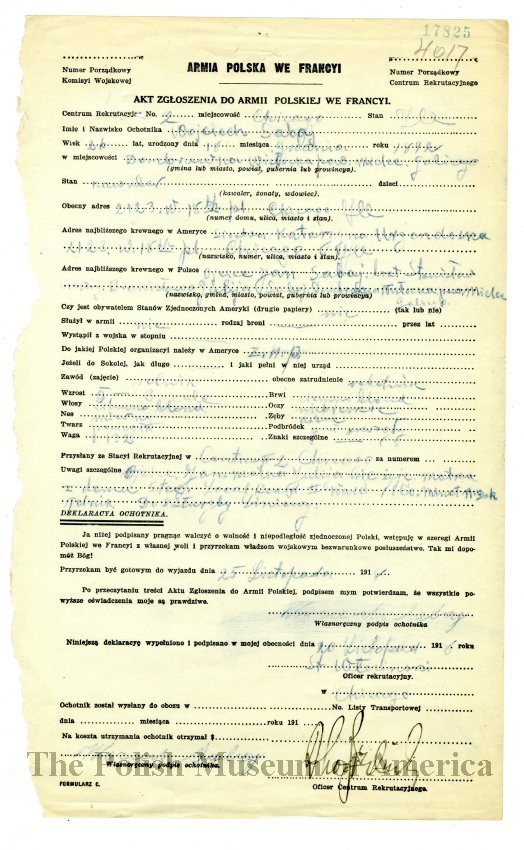 Dokumenty rekrutacyjne Armii Polskiej we Francji | Polish Army in France Recruitment Papers – Wojciech Sabaj