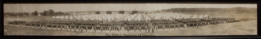 Panoramiczne zdjecie przedstawiajace rekrutow do Armii Polskiej na obozie treningowym w Niagara on the Lake, Kanada, 5 sierpnia 1918 roku.