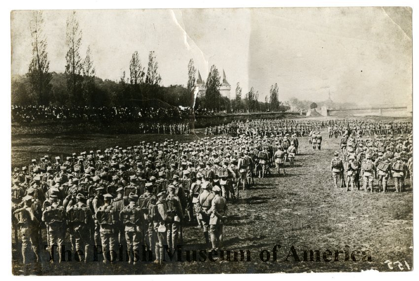 Black and white photograph depicting Polish Army in France in the field, 1917–1918.