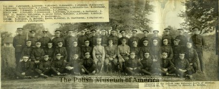 - Black and white panoramic photograph depicting members of the School of Infantry, Polish Army, with Capt. J.L. Lewis, O. C., Niagara Camp, Canada, Sept. 1918.