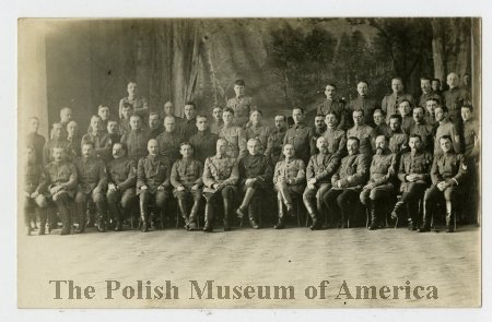 - Black and white photograph depicting soldiers from the Polish Army in France posing for a photograph;1917-1918.... View Full Record