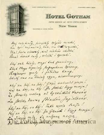 "Hej Orle Bialy" - slowa hymnu Armii Polskiej autorstwa I. J. Paderewskiego... View Full Record