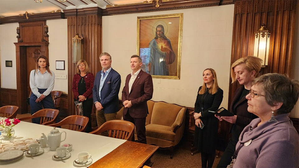 The guests who arrived at the building of the Polish Roman Catholic Union of America (PRCUA) and the headquarters of the Polish Museum of America were greeted by the president of the PMA, Richard Owsiany. Executive Board of the PRCUA headed by President James Robaczewski, Vice President Micheline Jaminski and Secretary-Treasurer Agnieszka Bastrzyk.