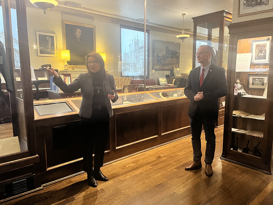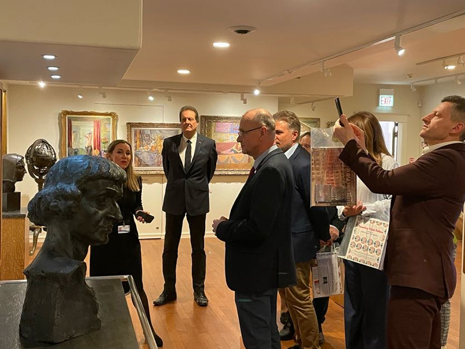 The Polish Museum of America (PMA) hosted a delegation composed of: President of the Polish Community Association, Mr. Dariusz Piotr Bonisławski and his associates, representatives of TVP and Polsat, as well as representatives of local governments in Poland. (Katarzyna Czyżycka - program director of the Teacher Training Center of the "Wspólnota Polska" Association, Jacek Wiśniowski - mayor of Lidzbark Warmiński, representative of Polish local government officials; Marek Zając - secretary of the International Auschwitz Council to the Prime Minister of the Republic of Poland, head of Polsat Rodziny; Agnieszka Oszczyk - journalist and publicist for TVP; Zenona Bańkowska - managing director of the "Wspólnota Polska" Association, Agnieszka Kaczmarczyk - ODN SWP trainer, KLANZA trainer.) The delegation came to the USA as part of the project "Z Kopernikiem przez świat," which will be inaugurated on Saturday, February 11, 2023, at the Copernicus Center.