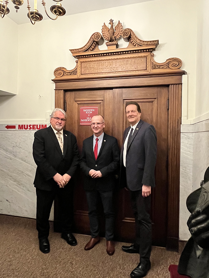 W dniu dzisiejszym Muzeum Polskie w Ameryce (MPA) gościło delegację w składzie: prezes Stowarzyszenia Wspólnota Polska, pan Dariusz Piotr Bonisławski wraz ze współpracownikami, przedstawicielami TVP i Polsatu, przedstawicielami samorządów w Polsce. (Katarzyna Czyżycka - dyrektor programowy Ośrodka Doskonalenia Nauczycieli Stowarzyszenia "Wspólnota Polska, Jacek Wiśniowski - burmistrz Lidzbarka Warmińskiego, przedstawiciel polskich samorządowców; Marek Zając - sekretarz Międzynarodowej Rady Oświęcimskiej przy Premierze RP, szef Polsat Rodzin; Agnieszka Oszczyk - dziennikarka i publicystka TVP; Zenona Bańkowska - dyrektor zarządzający Stowarzyszenia "Wspólnota Polska", Agnieszka Kaczmarczyk - trener ODN SWP, trener KLANZA. Delegacja przybyła do USA w ramach projektu "Z Kopernikiem przez świat", którego inauguracja nastąpi w sobotę 11 lutego 2023 r., w Copernicus Center.