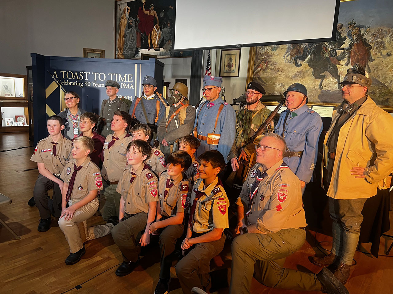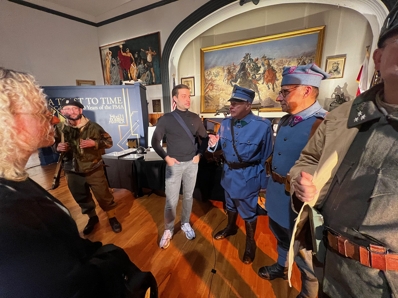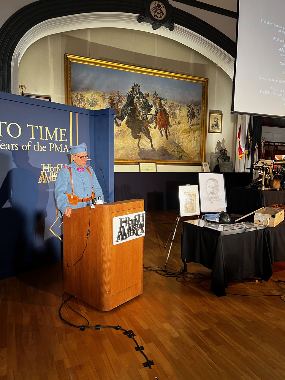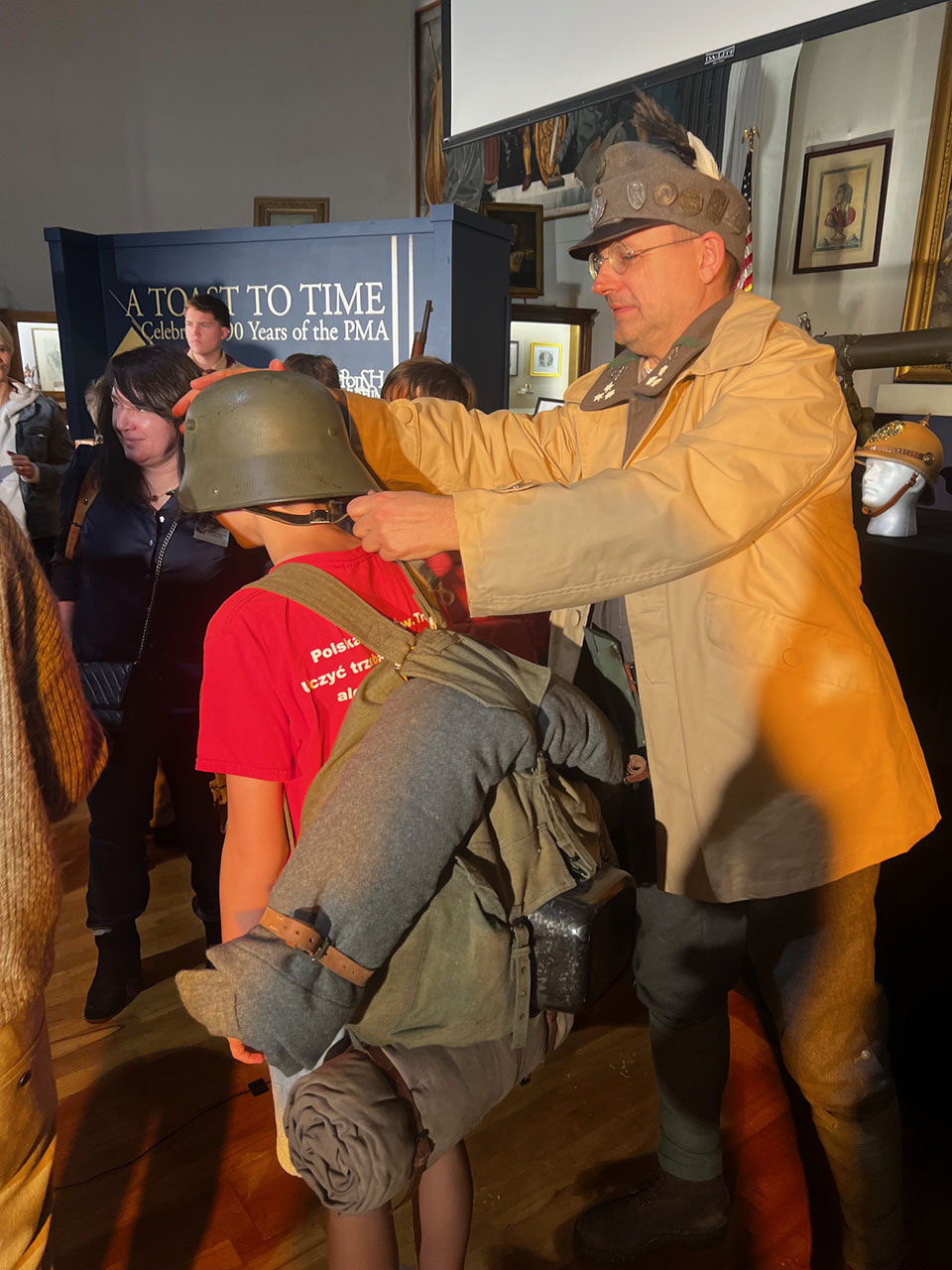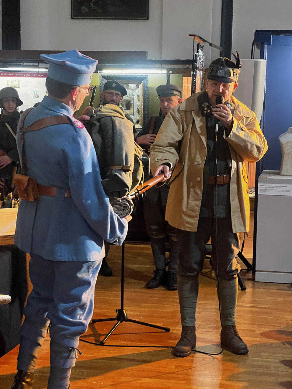 The event featured historical reenactors who were dressed in historical uniforms: Rafał Drwięga, Max Drwięga and Sergio Romero as Austro-Hungarian Polish soldiers, Krzysztof Wesołowski as a soldier of the Polish Legions, Marek Rowicki and Jan Loryś as soldiers of the Polish Army in France, and Valeriy Marchuk as a WWII Polish 1st Armoured Division soldier. The event also included a special historical display containing a number of original artifacts including rifles, machine-guns, steel helmets and gas masks, among others.