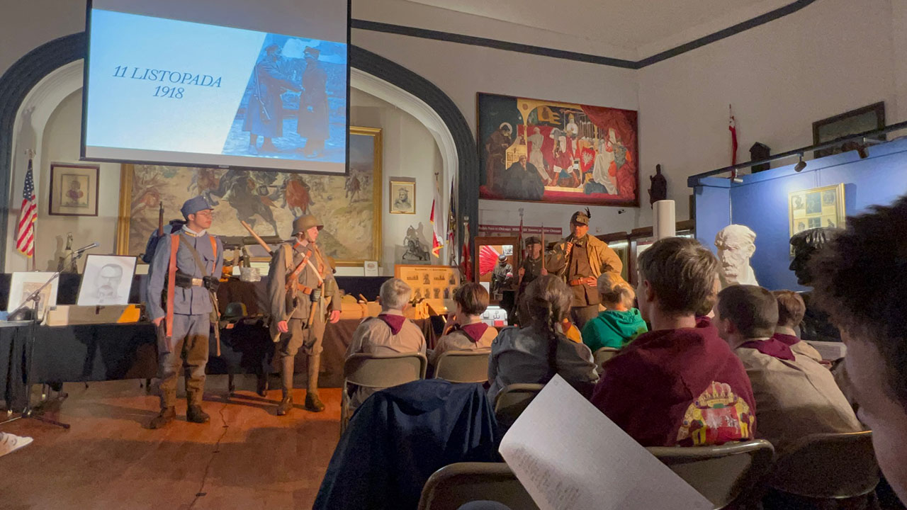 15 listopada 2025 roku Muzeum Polskie w Ameryce zorganizowało żywą lekcję historii, która przywróciła do życia historię walki Polski o niepodległość! We współpracy z edukatorami historycznymi Markiem Rowickim i Rafałem Drwięgą, goście mieli okazję zapoznać się z historiami, artefaktami i doświadczeniami, które ukształtowały walkę Polski o niepodległość podczas I wojny światowej.